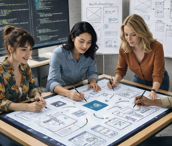 Auf Basis Ihrer Anforderungen entwickeln wir ein passendes Layout und Design. Struktur, Farben und Inhalte stimmen wir gemeinsam mit Ihnen ab, bevor die eigentliche Umsetzung beginnt.